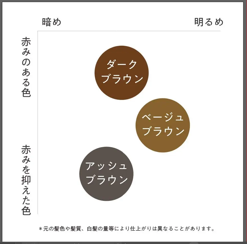 アッシュブラウンカラーを購入しました。気になっていた白髪が自然に染まり、嬉しい限りです。