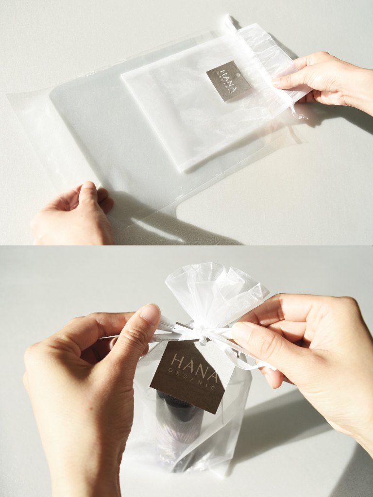 - 製品をラッピングバッグに入れます。