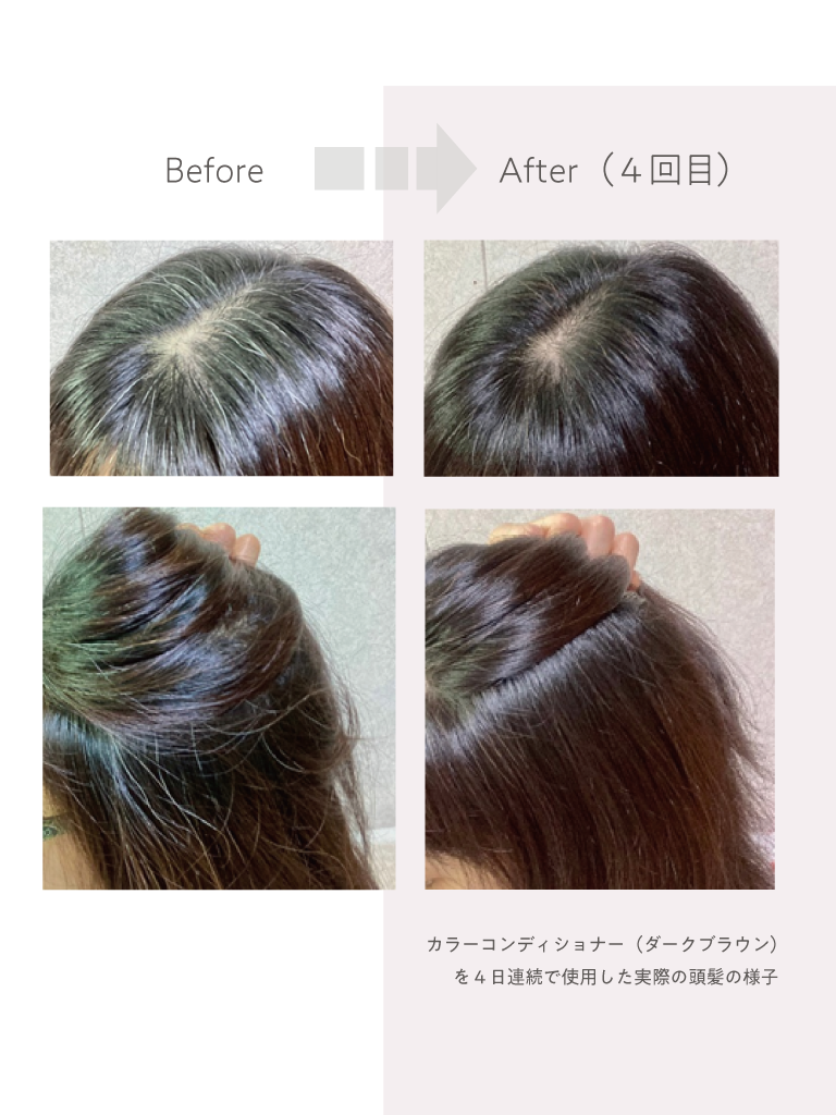 カラートリートメントを使用した部分は髪の毛がしっとりとしてトリートメント効果もとても感じます。これからも髪と頭皮のために使い続けたいと思います。 -